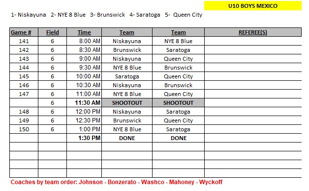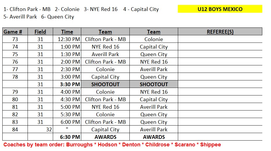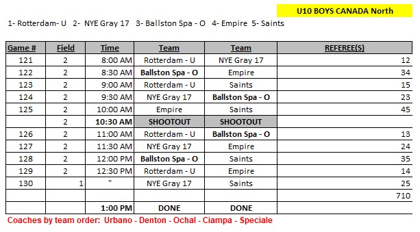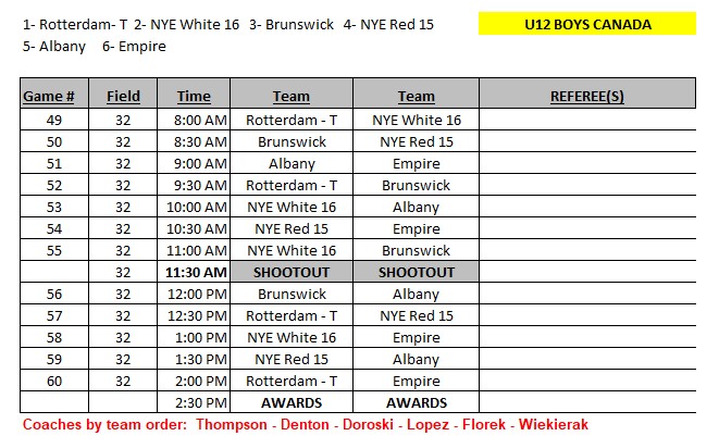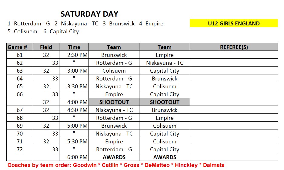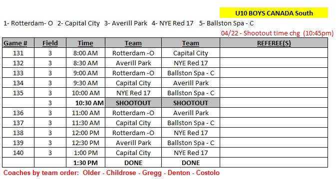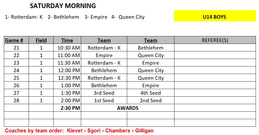 SCHEDULES : We hope to have multiple flights in some groups for U08-U12.
