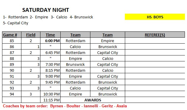 Sat Night - Boys and Girls HS- U17-19 -- (Approx 5:00pm - 11:15m)