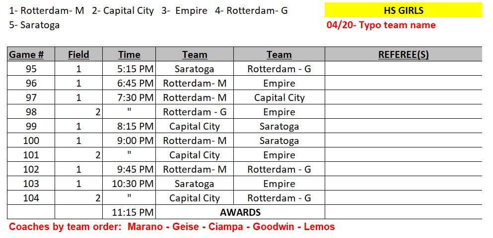 Schedules are posted - HS still working on them (4/16/26 - 9:00pm)